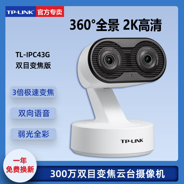 TP-LINK300 ten thousand wifi binocular zoom camera holder wireless camera Home mobile phone monitor two-way speech weak light full color 360 degrees panoramic 2K HD night vision TL-IP