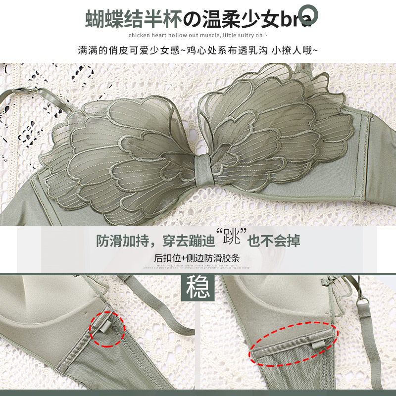 Dianfen Comfort Sensation Beauty Back Underwear Small Bra Coalless No Steel Ring No Shoulder Strap Girl Half Cup Lingerie Suit