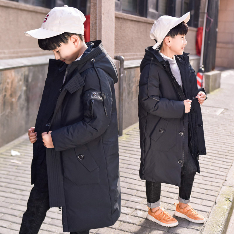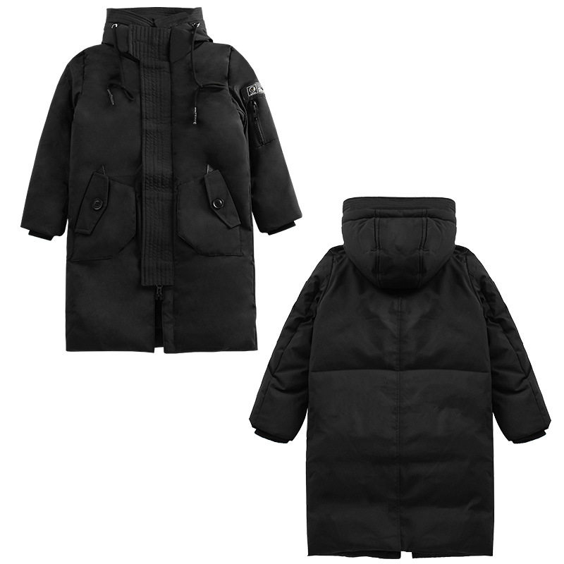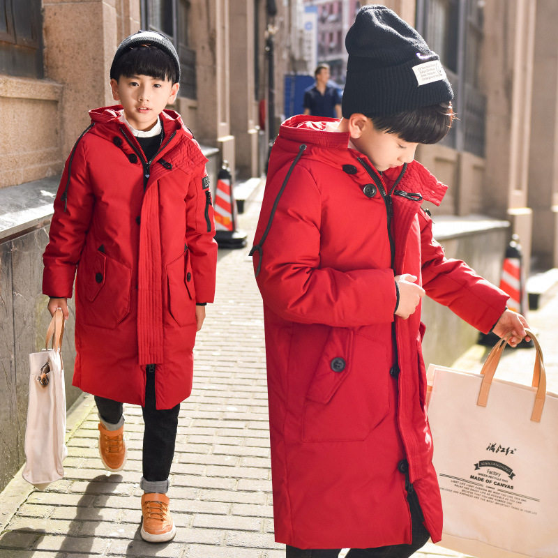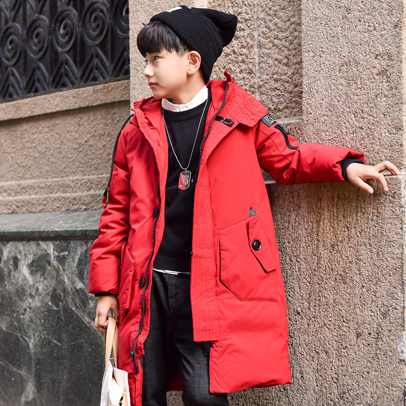 Boys and children's mid-length down jacket thickened red gray black jacket boy big boy hooded cotton-padded jacket clothes winter clothes