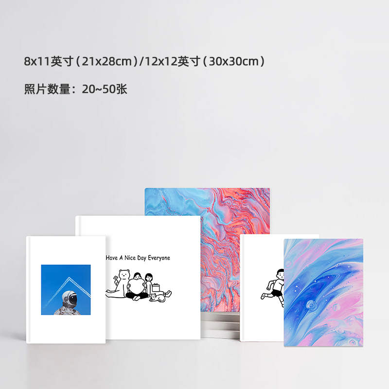 Couple photo album 8*11 inches (the cover and inside pages are all customized) Couples album 12*12 inches (the cover and inside pages are all customized) Family photo album 8*11 inches (the cover and inside pages are all customized)
