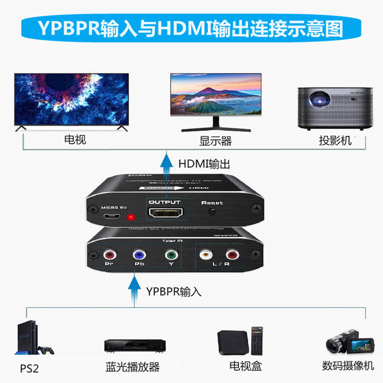Color difference to HDMI converter computer old TV projector color difference line YPBPR to HDMI video HD line