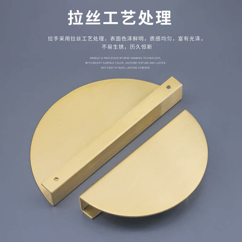 New Chinese-style handle cabinet pure copper semi-circular European-style bookcase wardrobe door Nordic light luxury cabinet door pair half-copper handle