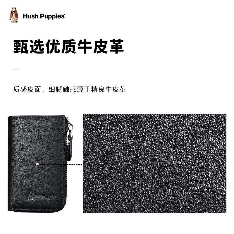 Hush Puppies key bag men's multi-function high-end leather car key bag card bag two-in-one vegetable tanned leather bag