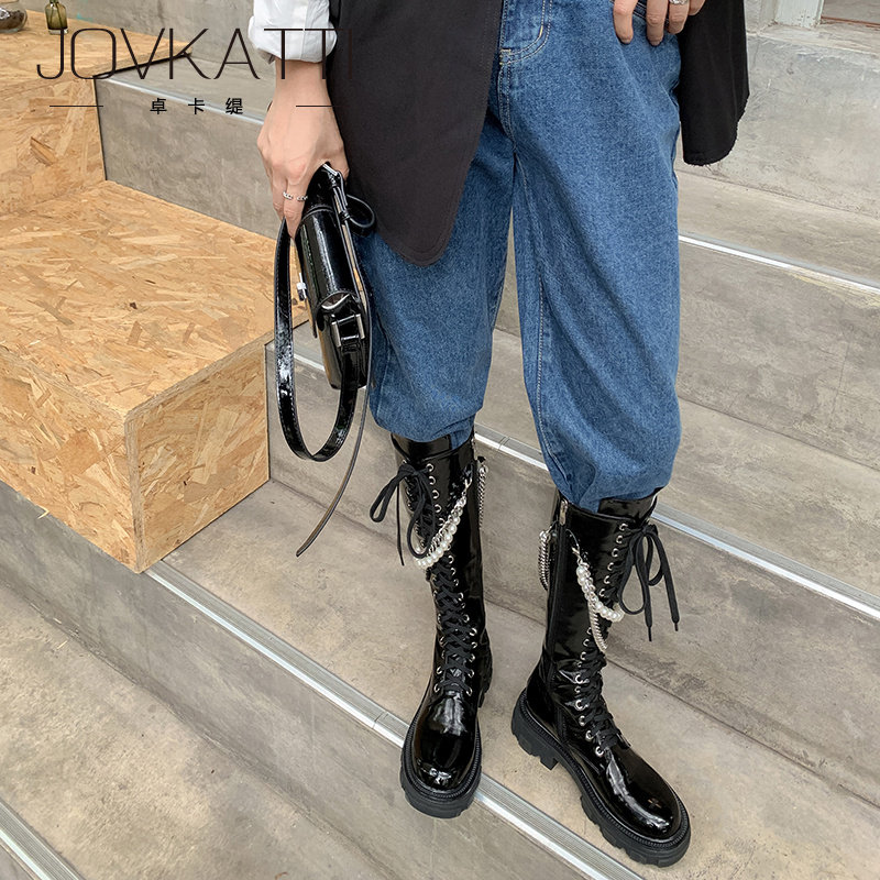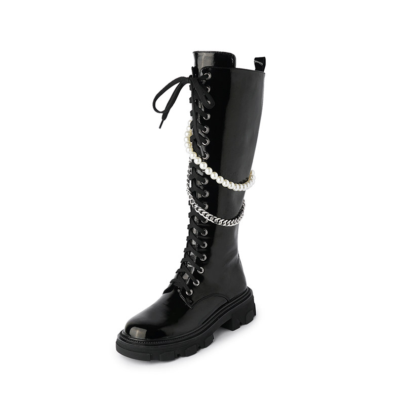 Long tube Martin boots winter thick boots 2022 pearl chain thick and thick - solid knights boots