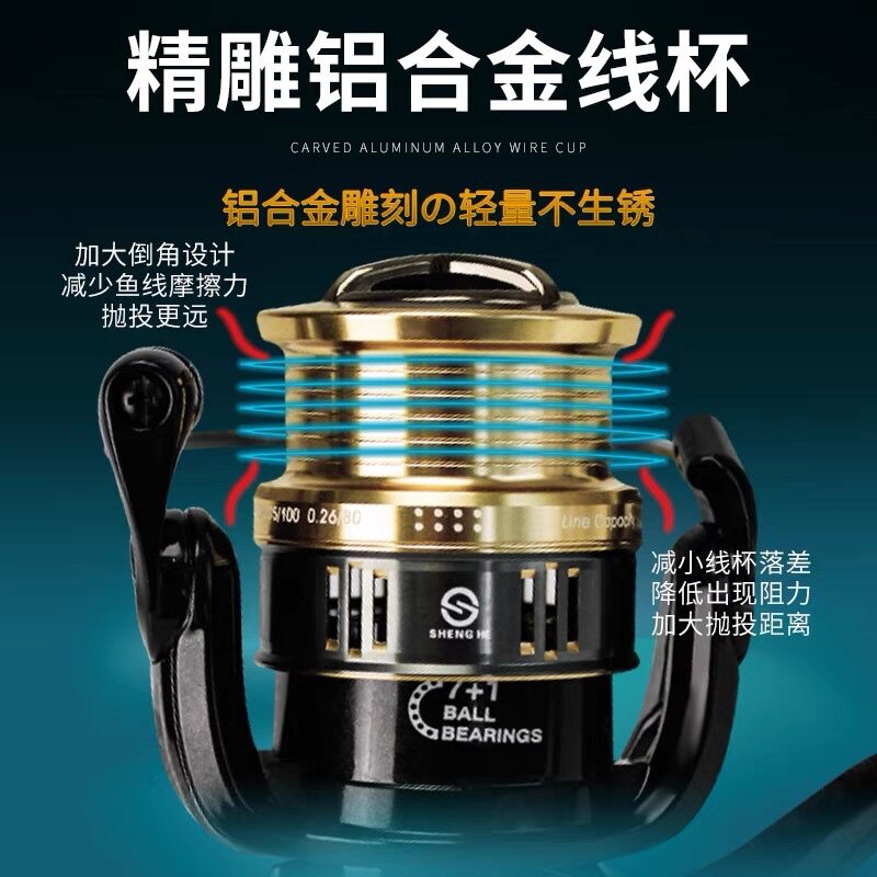 Shenghe Xiaoju's new small green reel Sea King all-metal horse mouth wheel oblique mouth line cup white stripe mouth fish line wheel