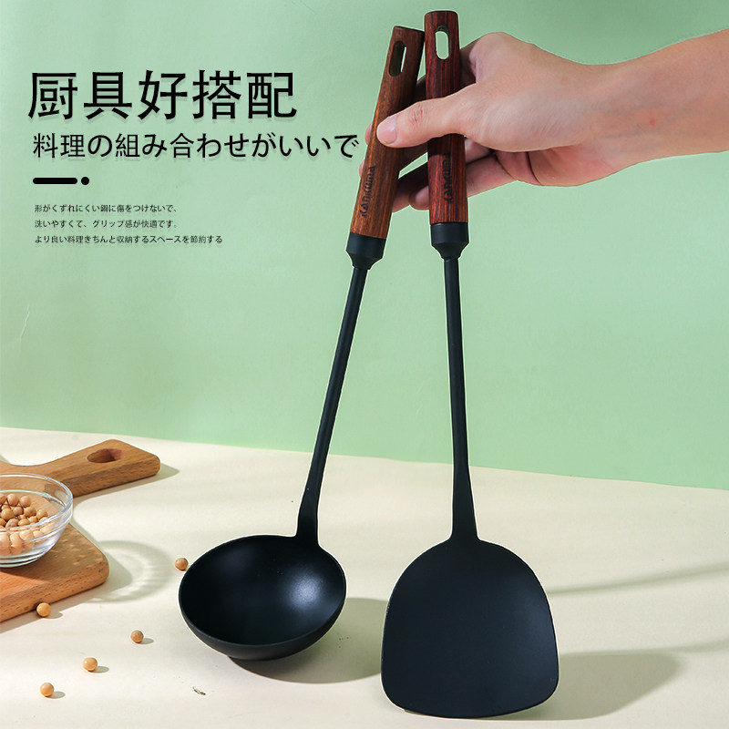 kankuma Japanese-style shovel spoon household spatula long handle pole iron cooking shovel soup spoon wooden handle iron shovel cooking frying spoon