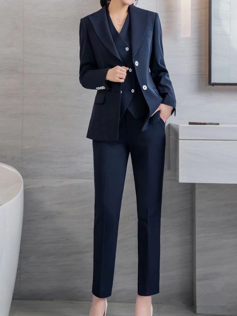 Gun lapel navy blue (top trousers vest) flat wave collar navy blue (top trousers vest) gun lapel navy blue (top trousers) temperament khaki (top trousers) temperament khaki (top