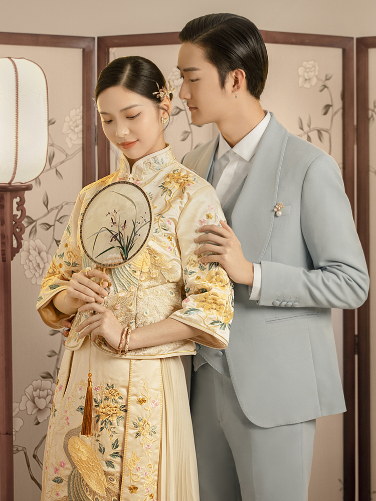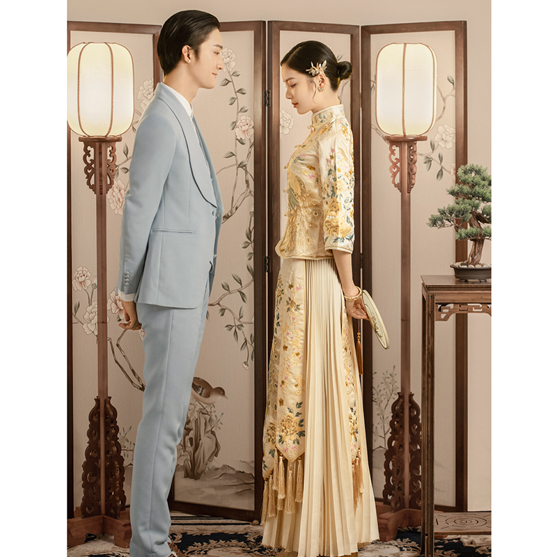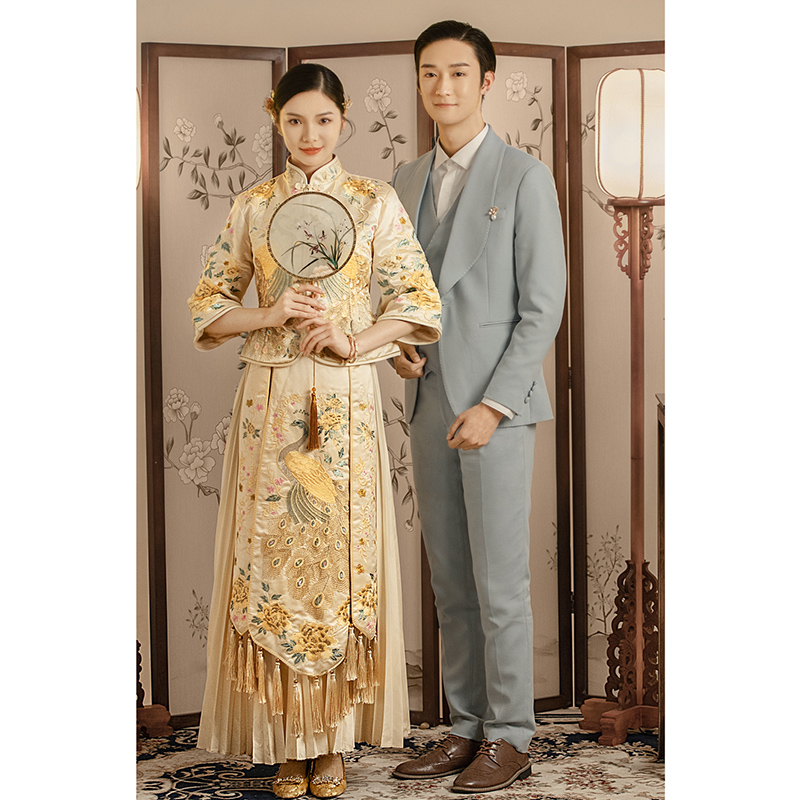 Golden Xiuhe clothes summer thin section out of the cabinet clothes champagne Chinese wedding clothes toast clothes ancient wedding clothes wedding clothes show kimono