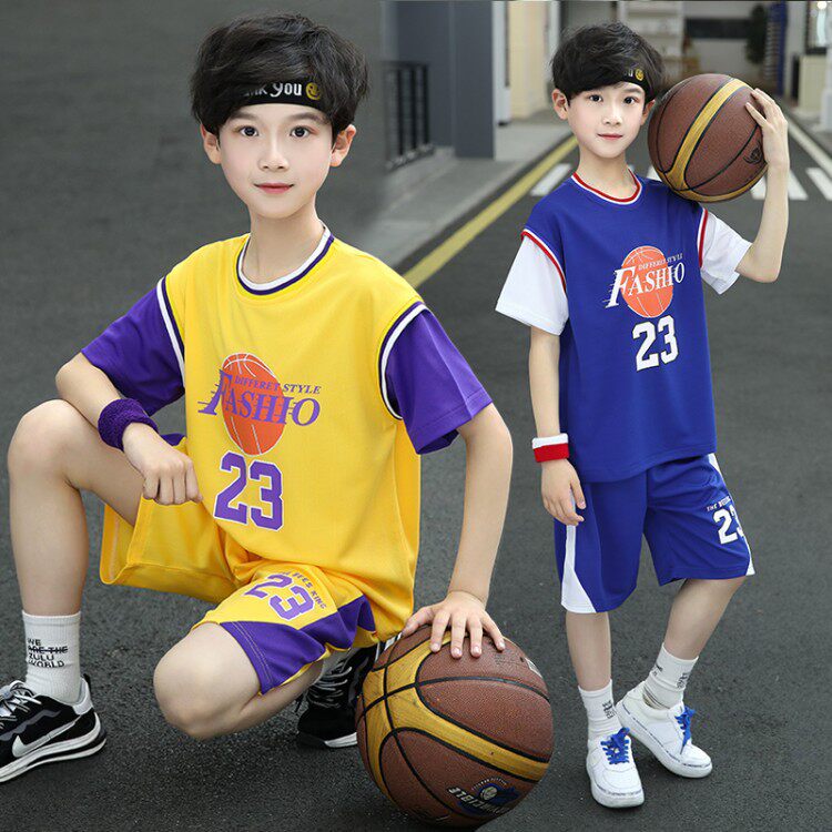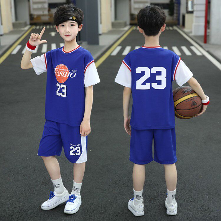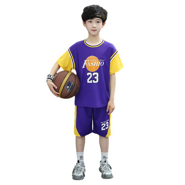 Boys quick-drying training competition sports suit short-sleeved two-piece children's summer middle-aged children's No. 23 jersey summer clothes