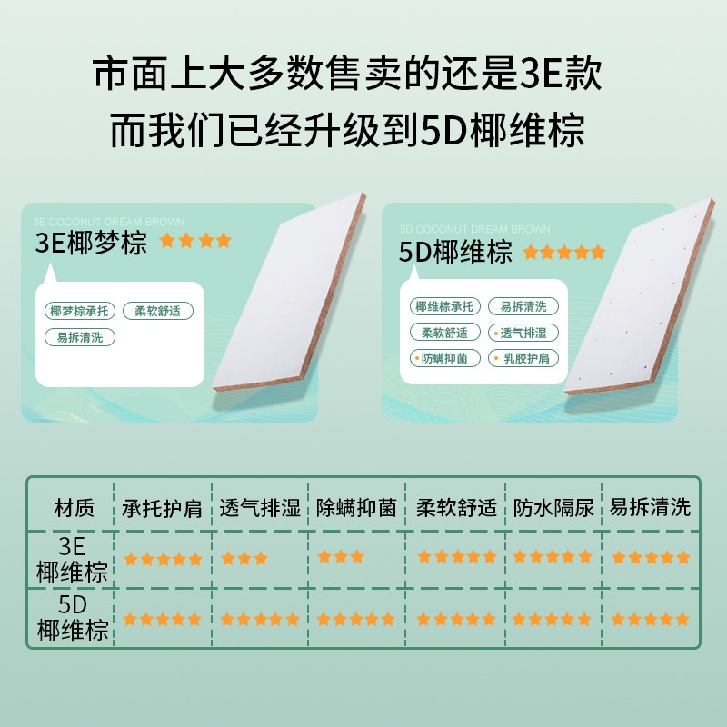 Sheep Bamboo Fiber 3E Single Core-5CM Natural Coconut Palm Sheep Bamboo Fiber 3E Double Core-6CM (with Latex) Sheep Bamboo Fiber 5D Single Core-5CM Natural Coconut Palm Sheep Bamboo