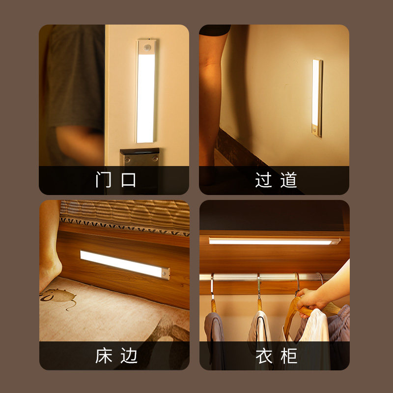 Intelligent long human body induction light wireless sound and light control home stair aisle wardrobe dressing room special night light