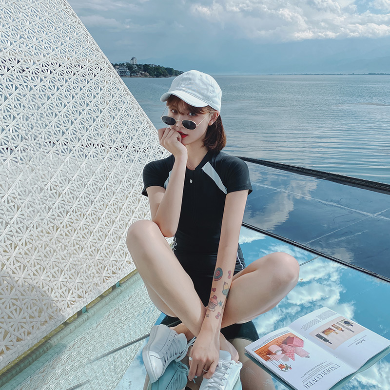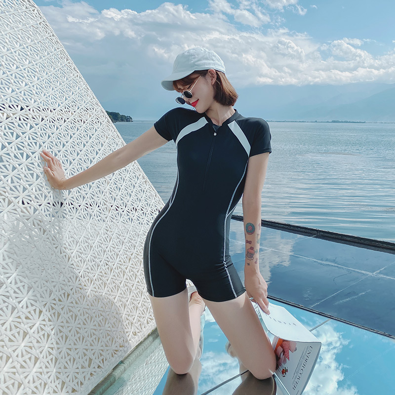 Swimsuit female 2021 New conjoined conservative flat corner belly thin professional sports surf soak hot spring swimsuit