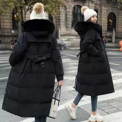 Anti-season down jacket female 2021 new Korean slim-fit thickened white duck down real hair collar long winter jacket female