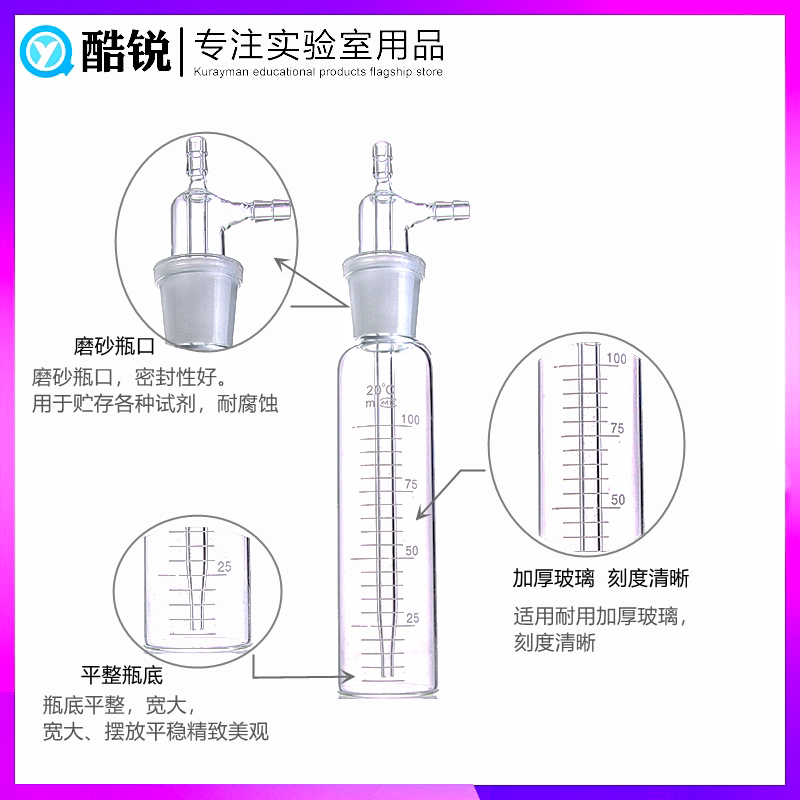 Straight impact absorption bottle impact gas sampling tube 10ml25ml50ml75ml gas sampling bottle white brown bottle laboratory equipment glassware