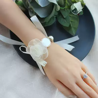 Korean bride wrist flower bridesmaid wedding bracelet Super fairy bow net gauze hand Flower party dress hand tie flower