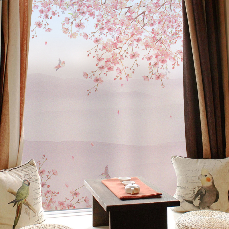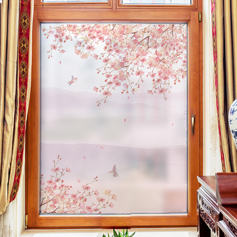 Chinese style make-up room anti-peep glass sticker light transmission opaque shading bathroom window sticker anti-walking photostatic sticker