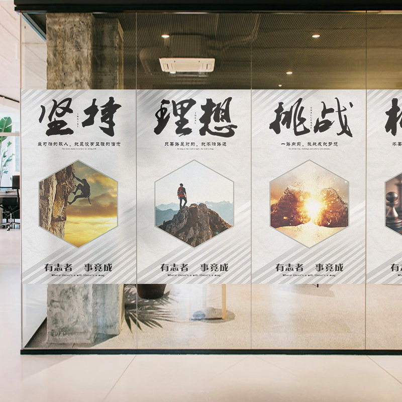 Office Frosted Glass Stickers Customised Corporate Inspirational Company Partition Doors And Windows Sticker Anti-Walk Light