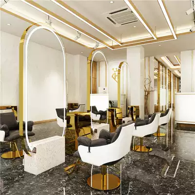 New Net red shop mirror hair salon special double-sided floor-standing hairdressing shop mirror table with light makeup mirror
