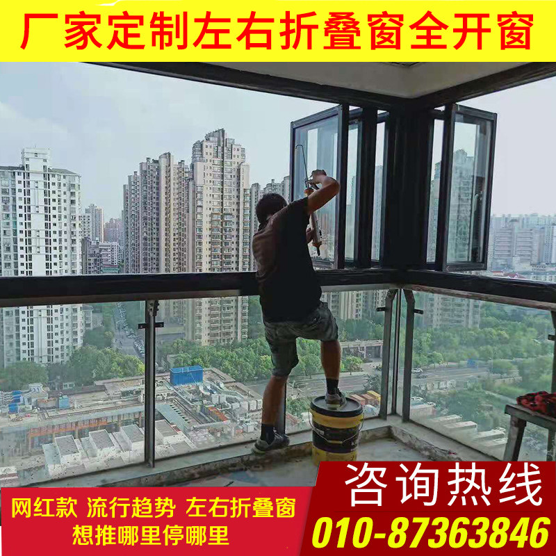 Manufacturer direct sales left and right folding window customized panoramic open window indoor and outside balcony window to deliver full open push-pull folding window