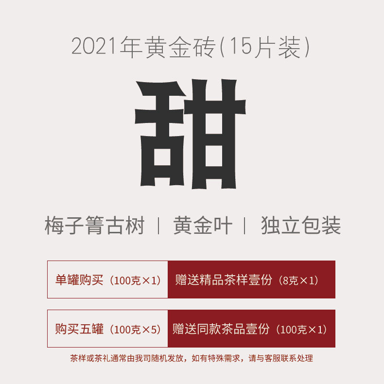 Mei Ziqing gold brick 2021 years old Spring ancient tree gold leaf Pu'er raw tea bag bubble test drink 15 pieces 100 gr