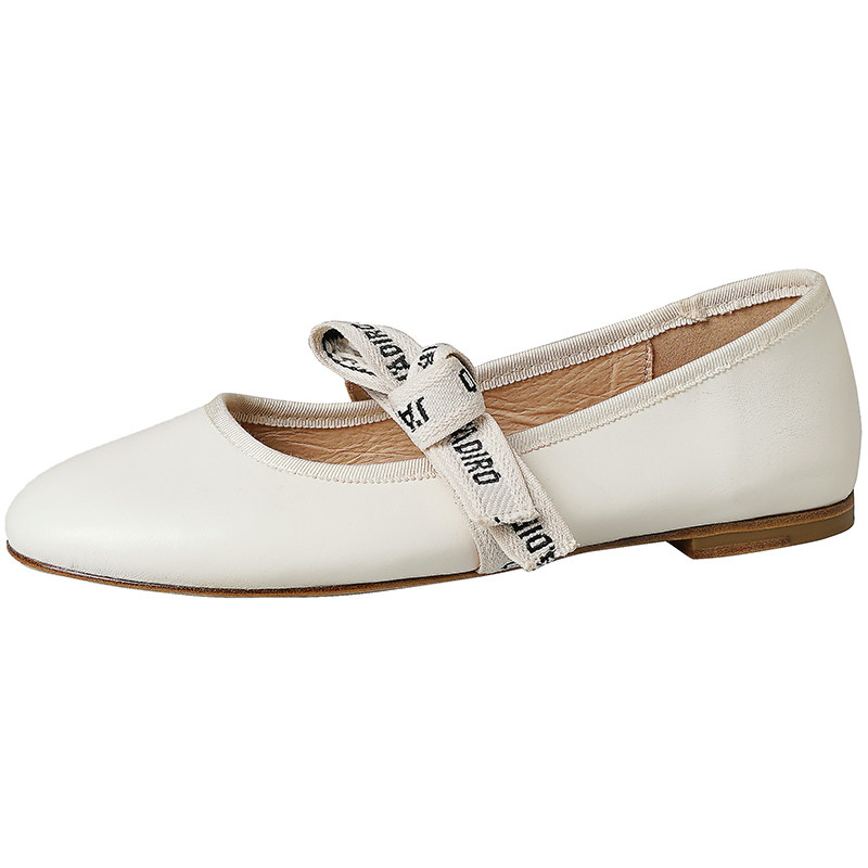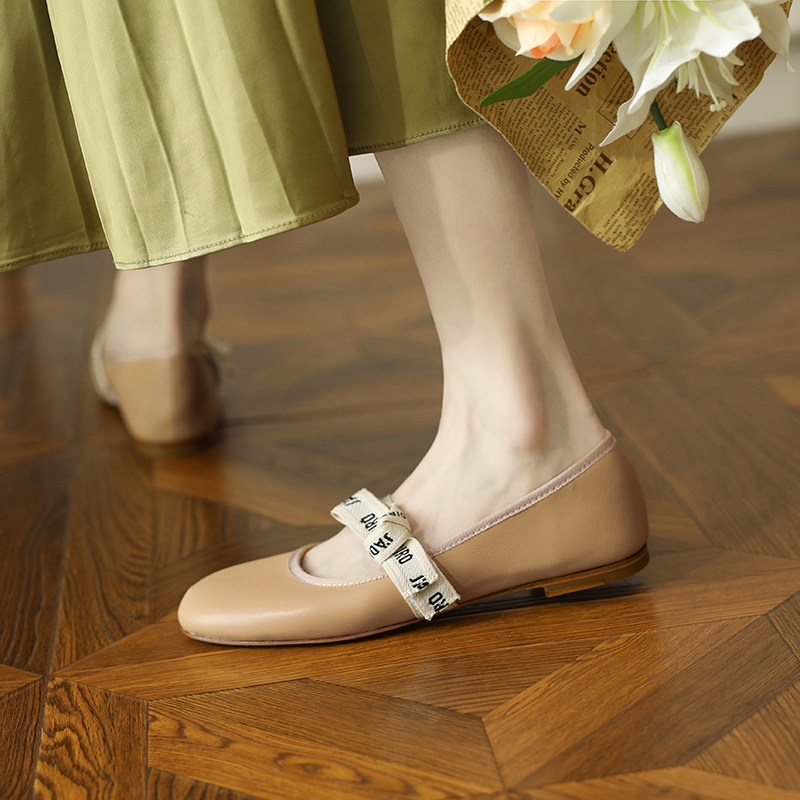One Force Rice Grey 2022 Spring Autumn New Round Head Flat Bottom Flat Single Shoes Woman Butterfly Knot Fairy retro Soft bottom Grandma Shoe