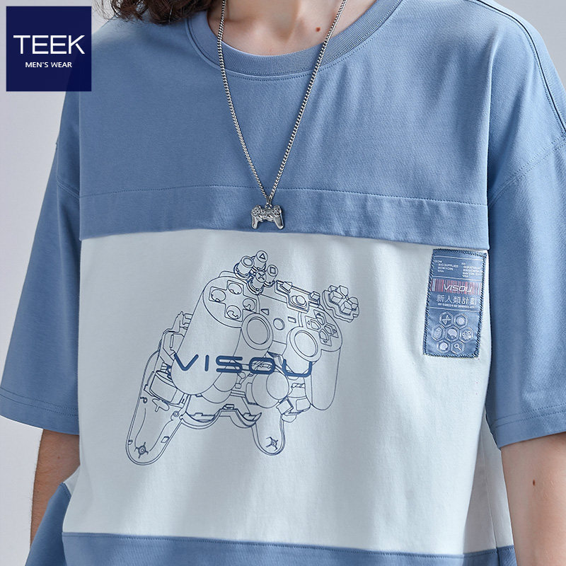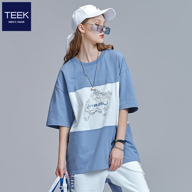Collage pure cotton short sleeve t-shirt male summer loose Korean version 50% blouses