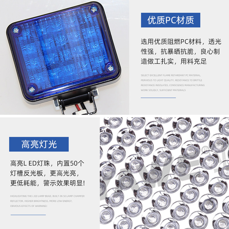Patrol electric car locomotive front warning lights flashing lights LED square front lights red blue burst alarm light 12V