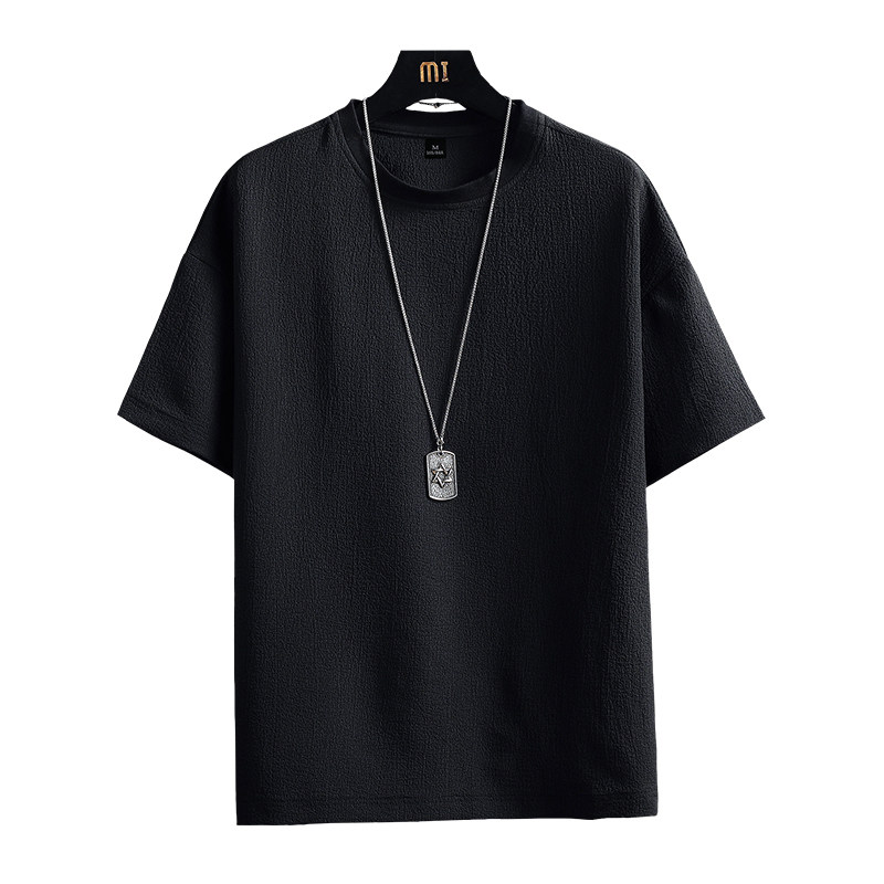 Linen Short Sleeved T-shirt Men T-shirt Lax Ice Filament Summer Thin Trend Men's Clothes White
