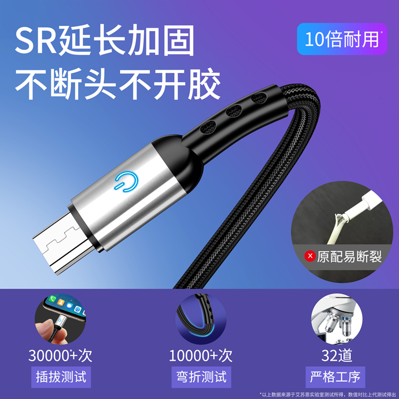 Android data cable fast charging flash charging extended charging cable micro usb suitable for punching vivo universal oppo mobile phone lanyard head mobile charging 0pp0 short 2 meters bluetooth headset
