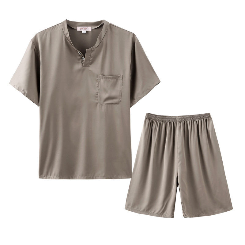 Ice silk pajamas men's summer thin short-sleeved shorts home service men's net red hot silk breathable loose suit