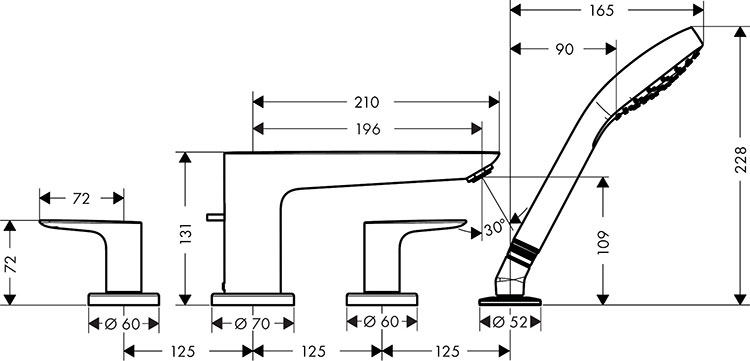 The faucet of the Table 71411007 14106007 contains the base of the 4 hole bathtub in Hansgjarotese, Germany