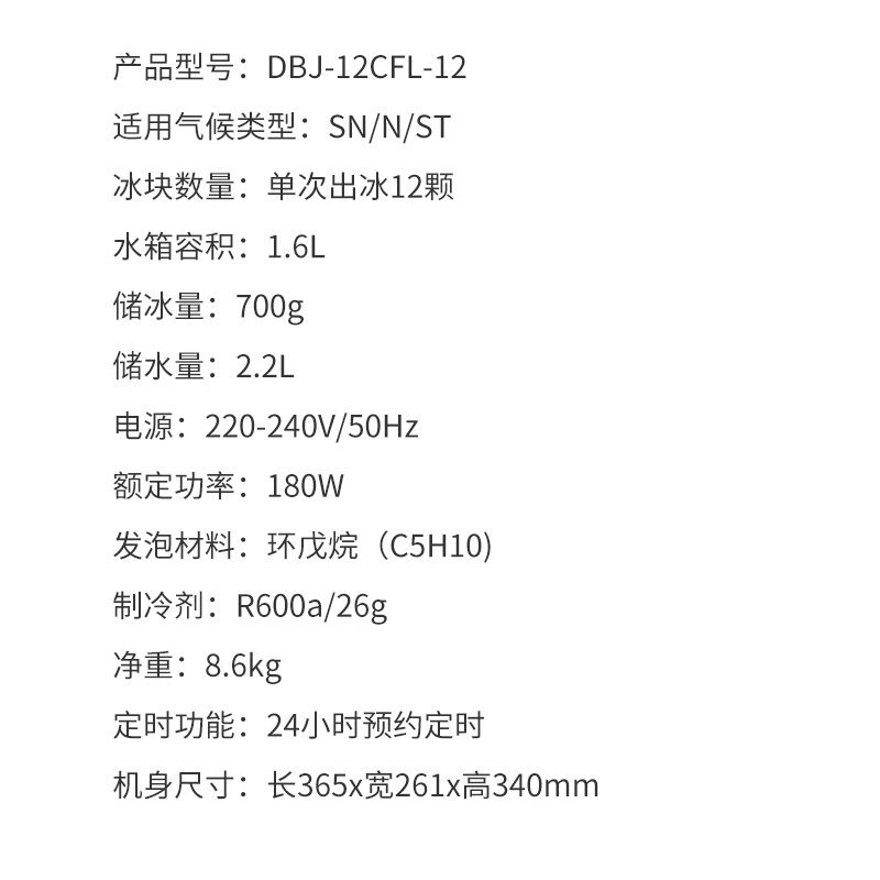 12 cubes of ice (daily ice production 25kg) 24 cubes of ice (daily ice production 30kg) 32 commercial ice cubes (daily ice production 45kg) 32 commercial ice cubes (daily ice production 70kg)