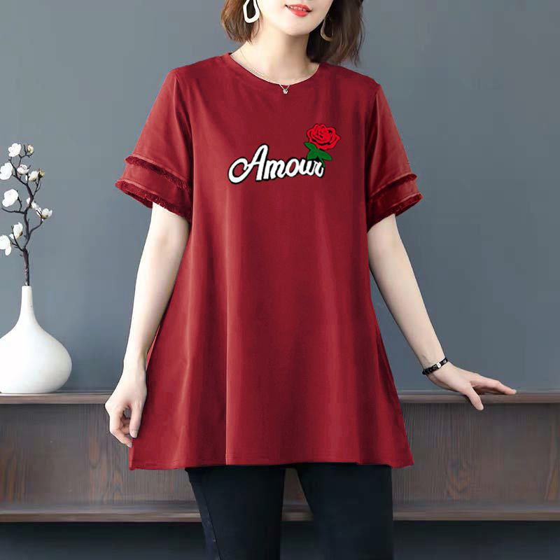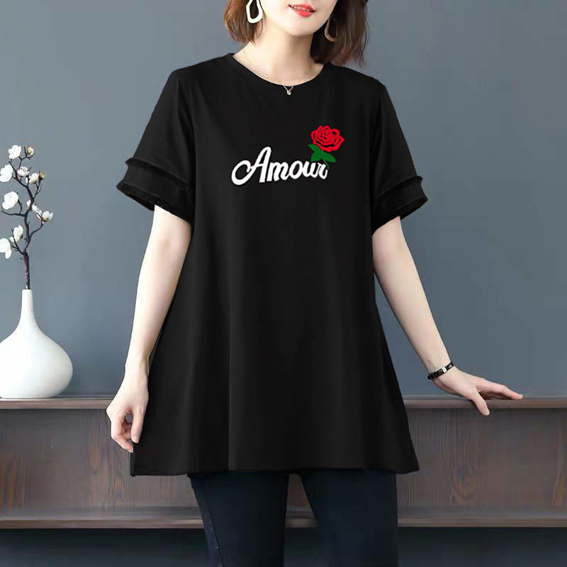 The cotton large size women T - shirt 2022 new Korean version of the new medium - long - sleeved coat in summer