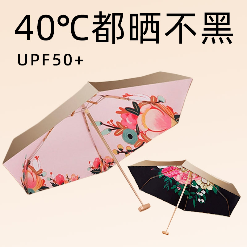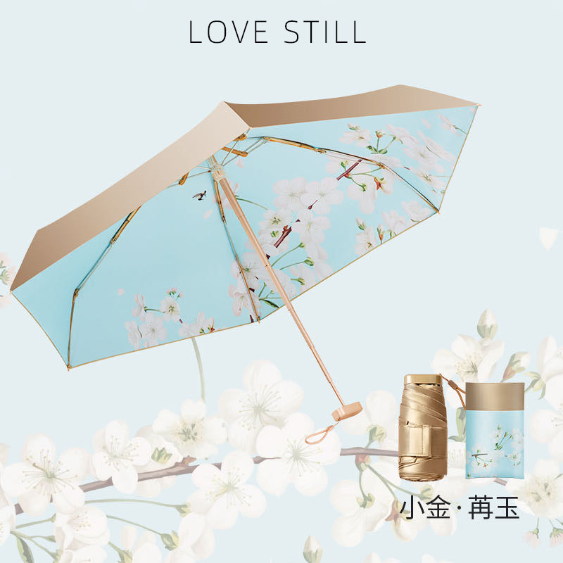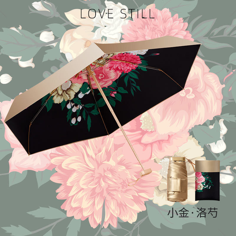LOVE Ultra Light Small Oil Painting Sunny Umbrella Dual-use Portable Five Fold Beach Umbrella Sun Protection Ultraviolet Sun Umbrella Woman-Taobao