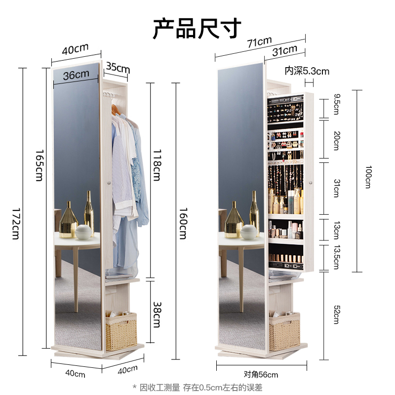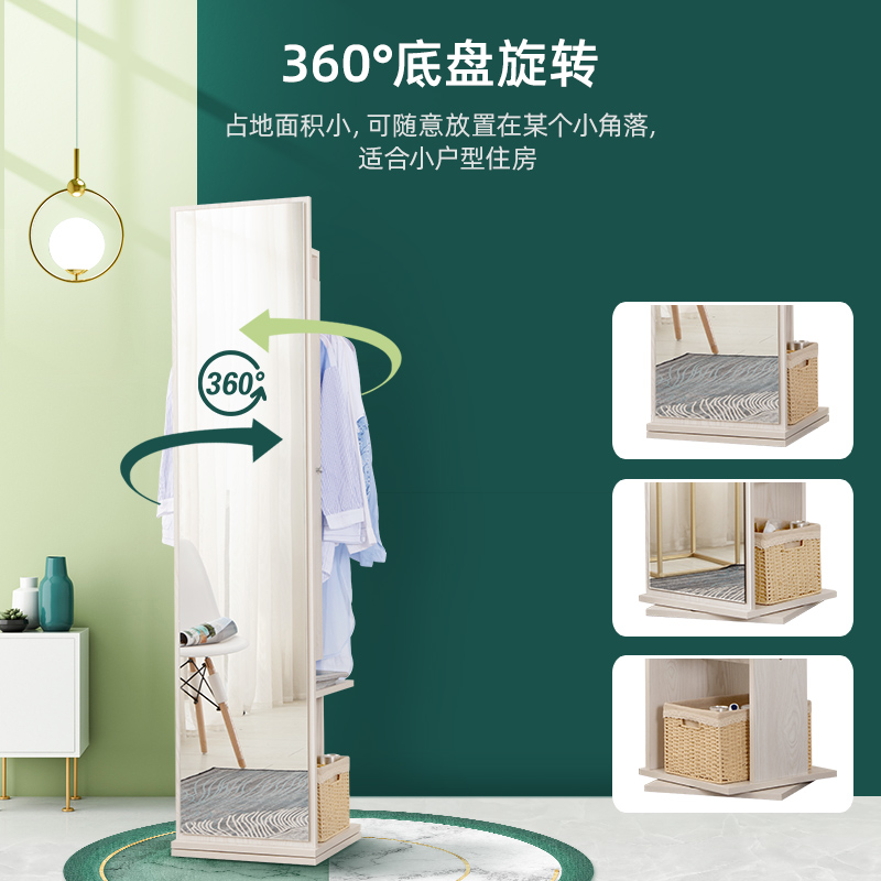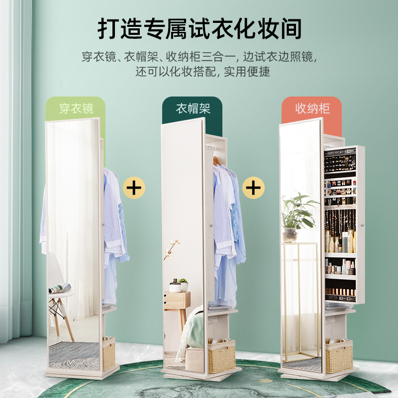 Mirror full-body full-length mirror household rotating floor storage mirror cabinet hanger integrated bedroom stereo full-body Mirror