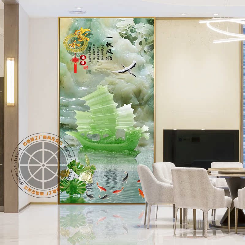New Chinese partition art glass background wall living room opening bedroom masking screen tempered light transmitting