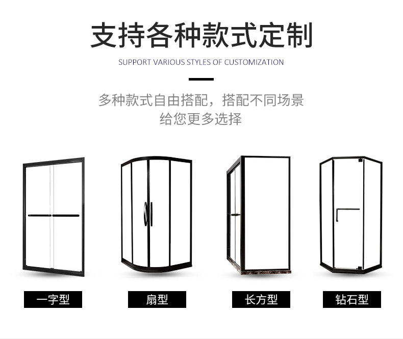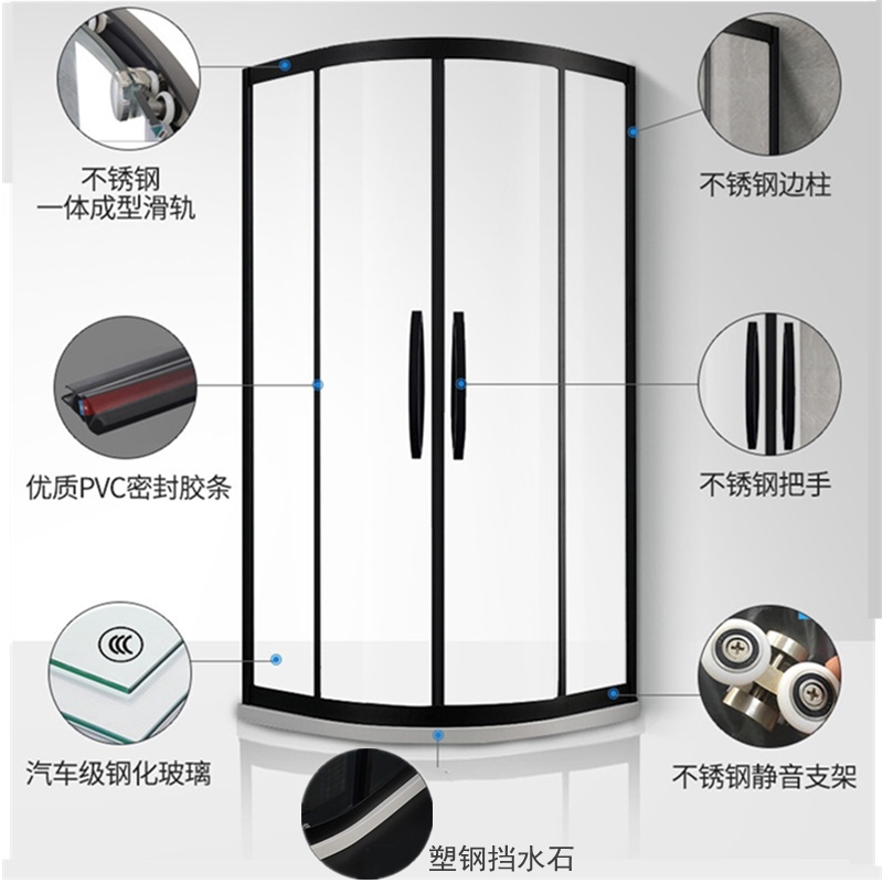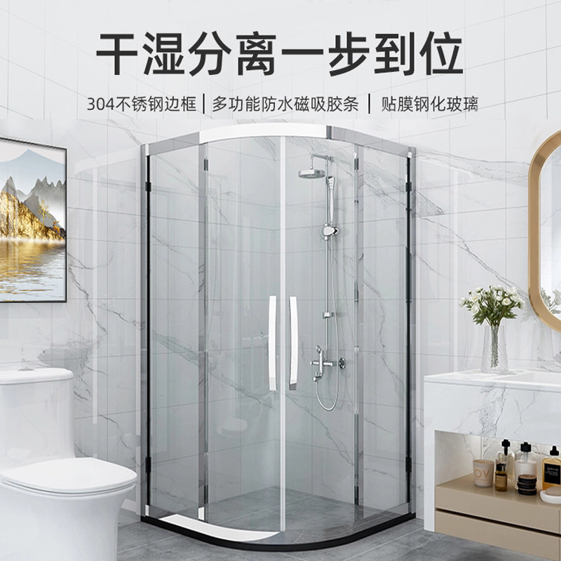 Customized stainless steel arc fan-shaped shower room shower room partition bathroom glass sliding door powder room dry and wet separation