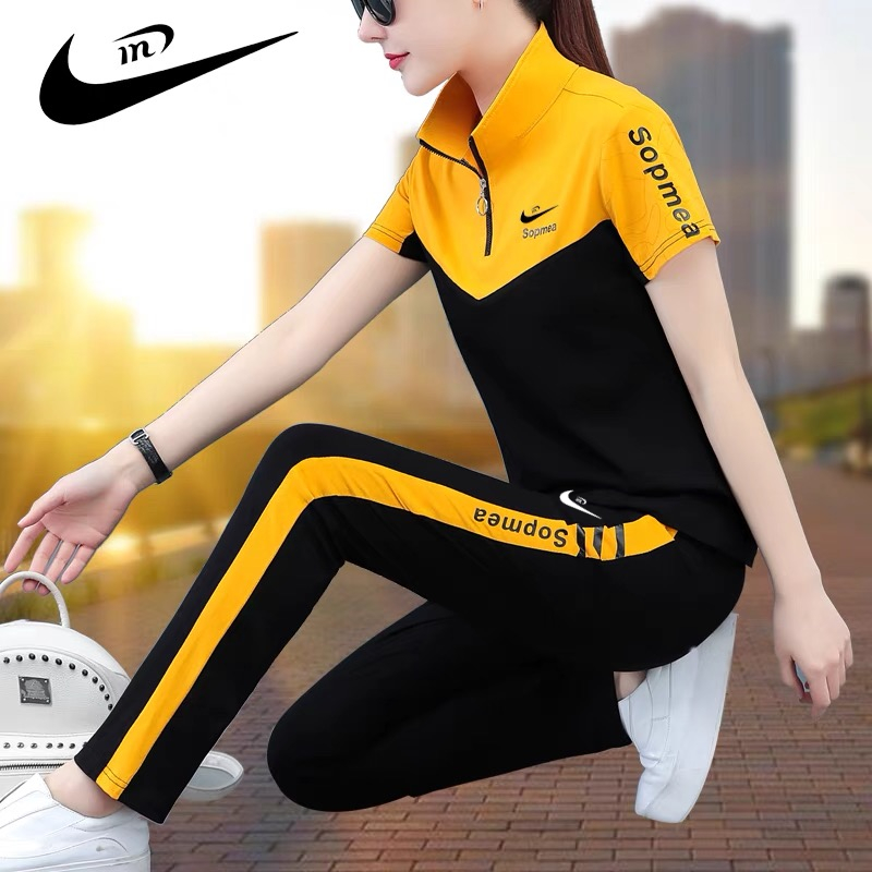 Hong Kong Nameplate Pure Cotton Short Sleeve Sports Suit Women 2022 Summer Korean version Fashion casual wear Running two sets of damp