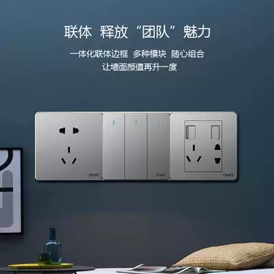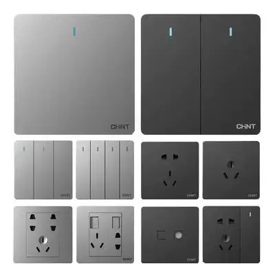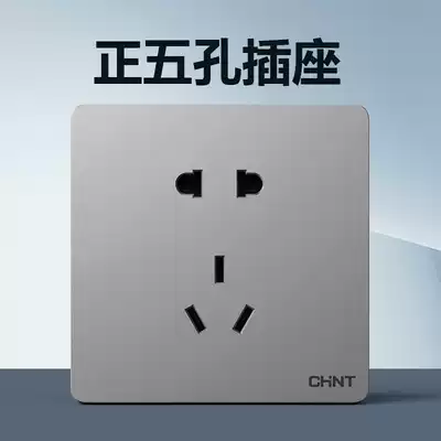 Chint Type 86 switch socket silver panel five-hole porous concealed gray household 86 type borderless Wall insert