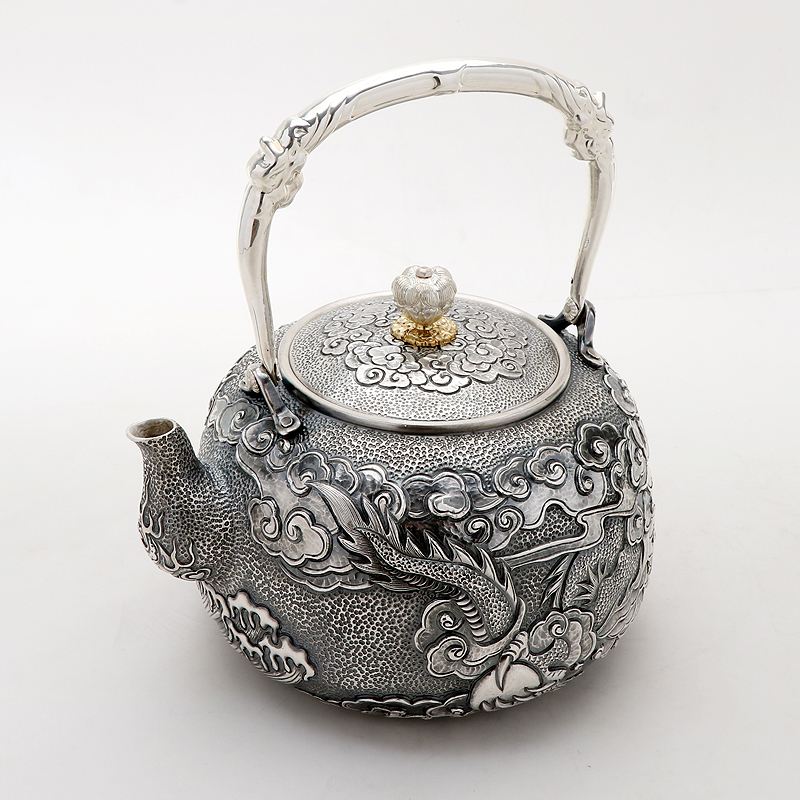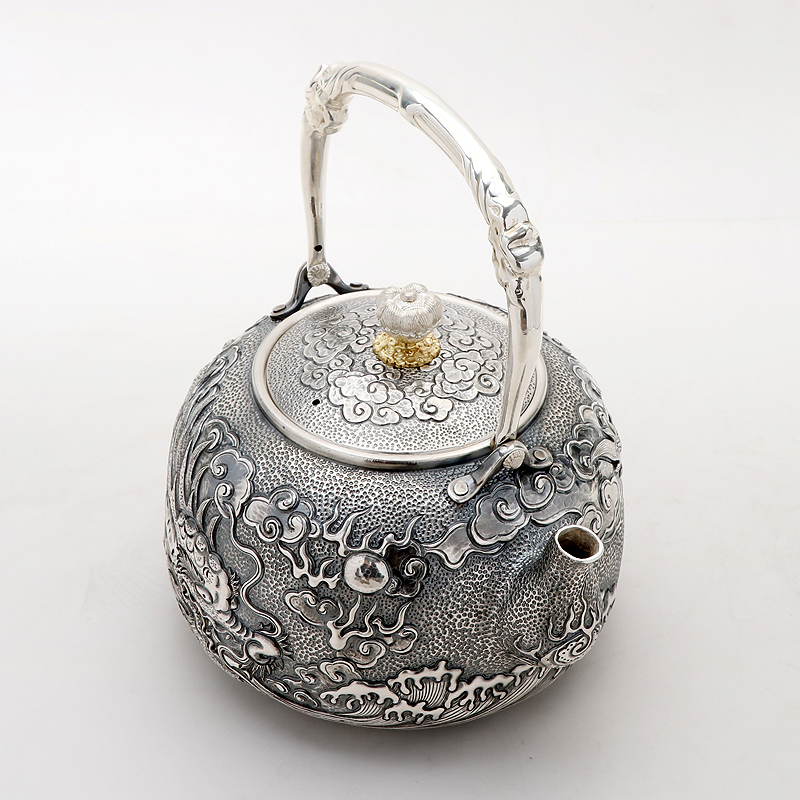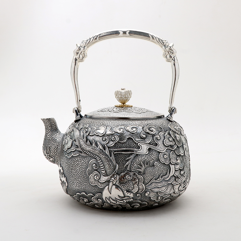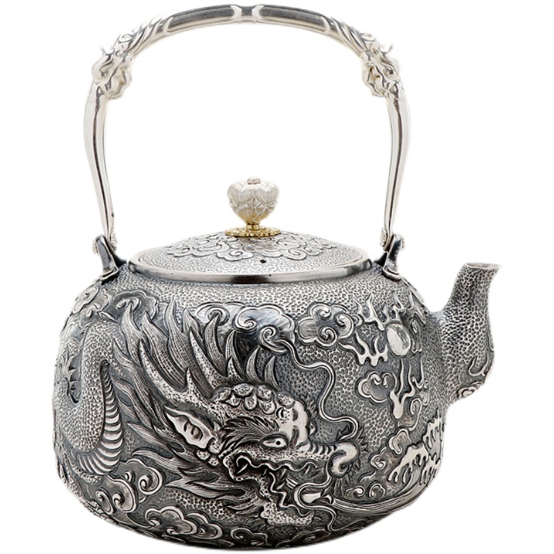 Tai'an Silver Industry Sterling Silver 999 Kettle Seiko Japanese-style High Relief Dragon Pattern Teapot Kung Fu Tea Set New Product