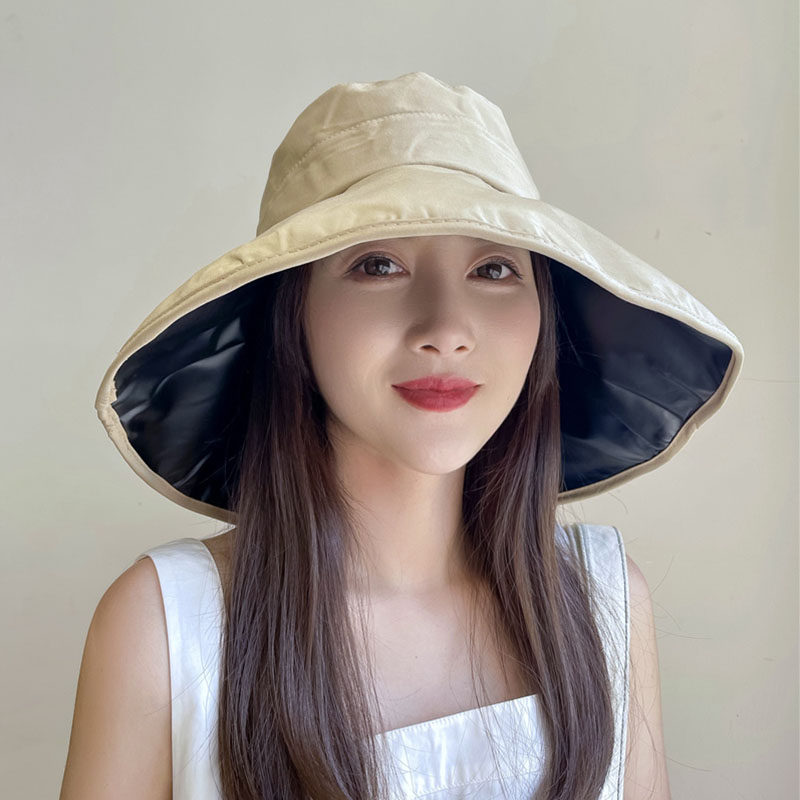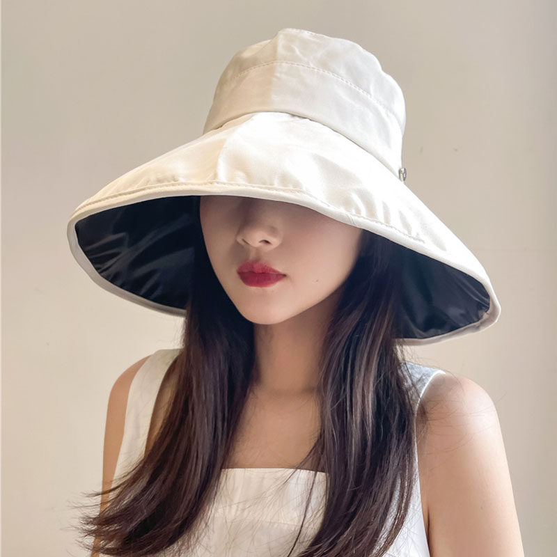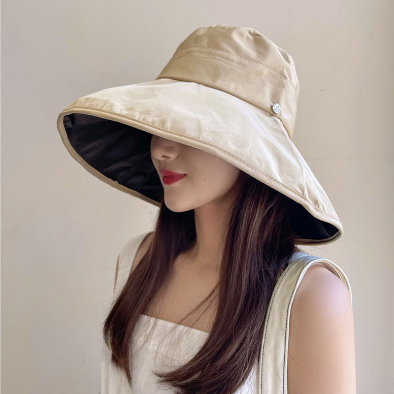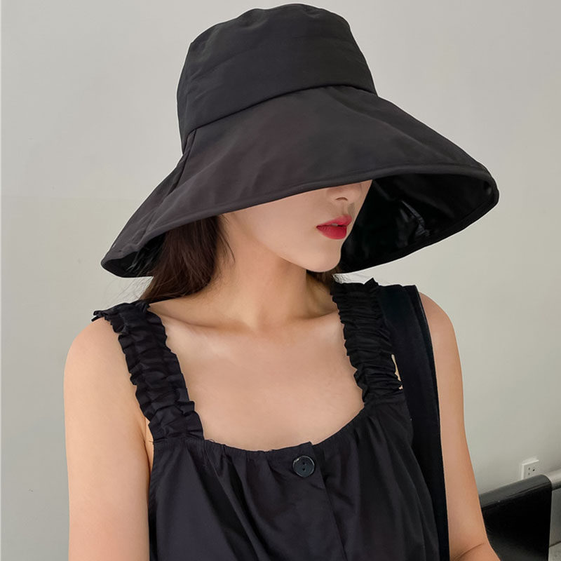 Evidison Free summer sun hat female black glue sunscreen face cover letter small M standard fashion casual fisherman hat