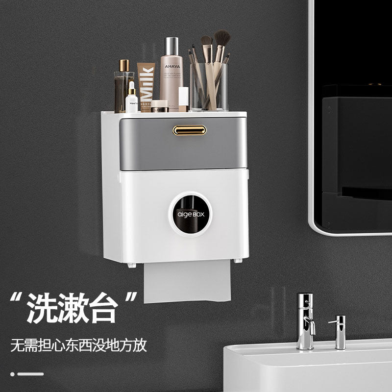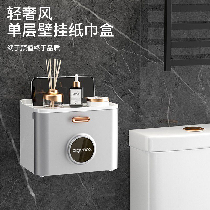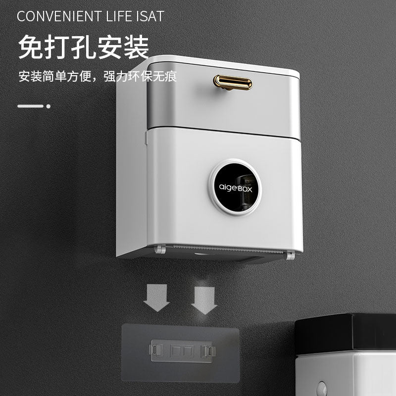 Toilet tissue box punch-free waterproof light luxury toilet paper box powder room bathroom wall-mounted toilet roll removable toilet paper rack
