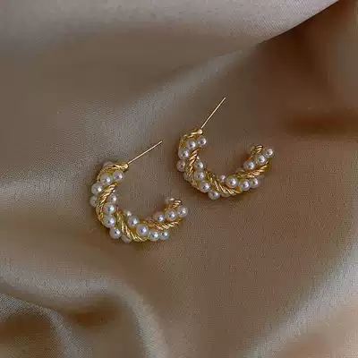 Sturbolea French elegant pearl earrings female 2021 new niche design retro harbor style ear needle