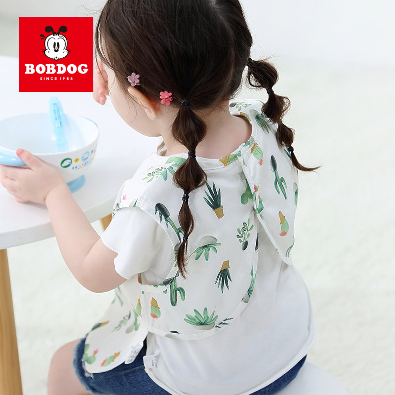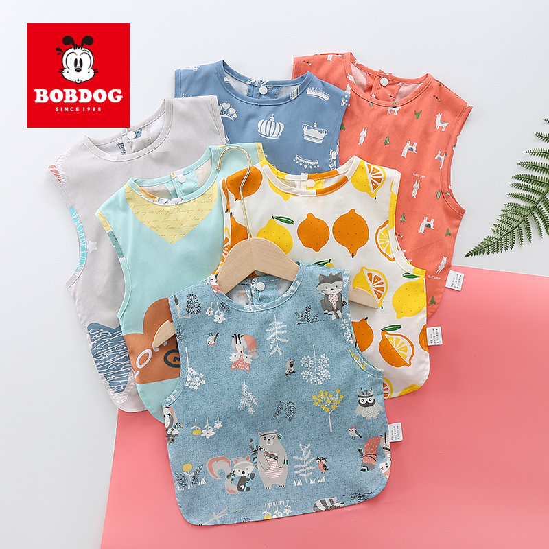 Babudou children's sleeveless eating bib short-sleeved eating bib pocket anti-dirty waterproof baby saliva bib cotton coverall - Taobao