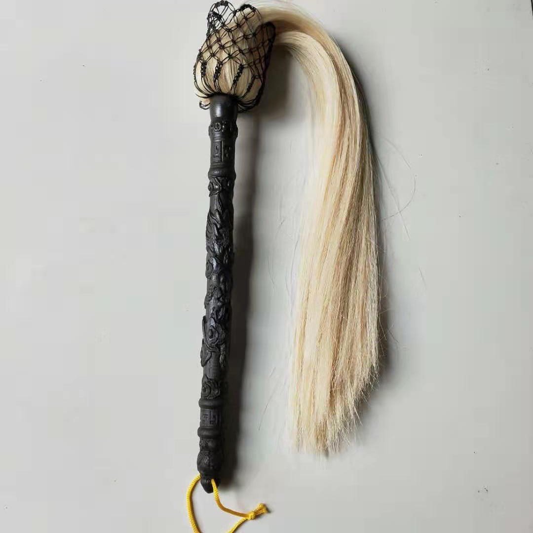 Special price real horsetail dust dust plate dragon pole peach wood handle Tai Chi floating dust Taoist Buddha dust fly throwing Zi Daoist magic instrument