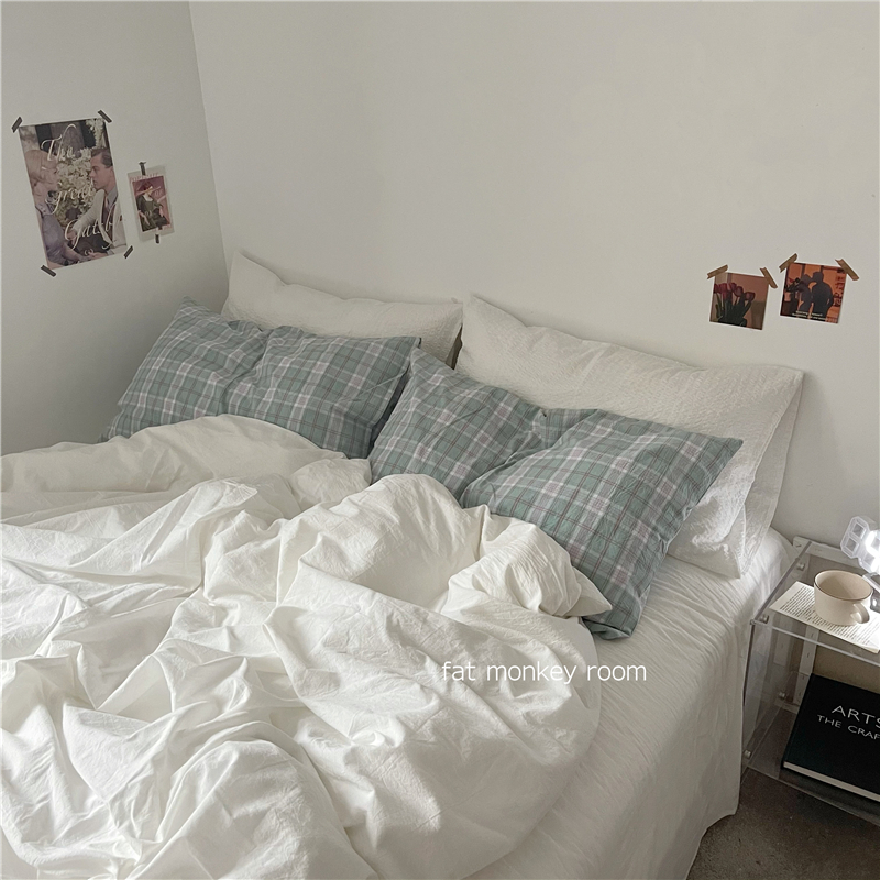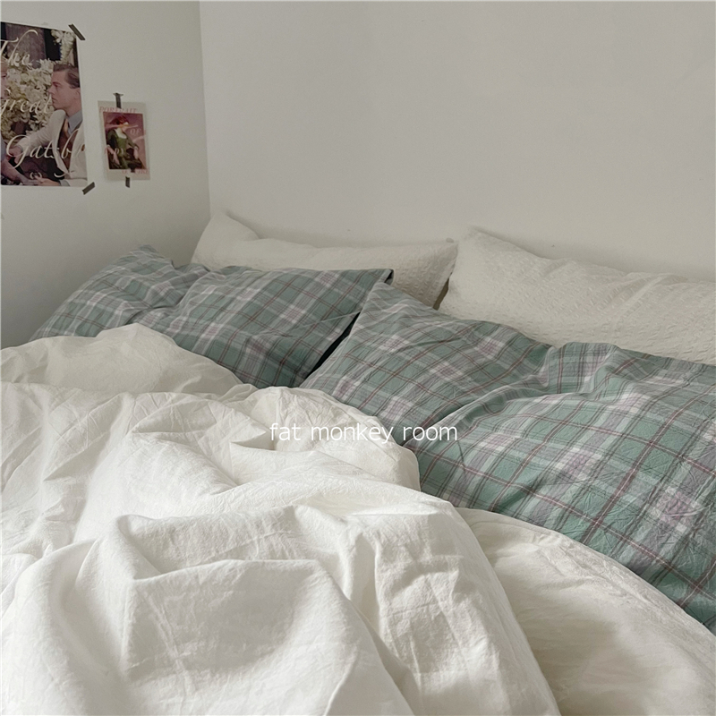 ins day style brief all cotton washed cotton cotton linen white mix lap green lemon grossed bed goods four pieces of lodgings three sets