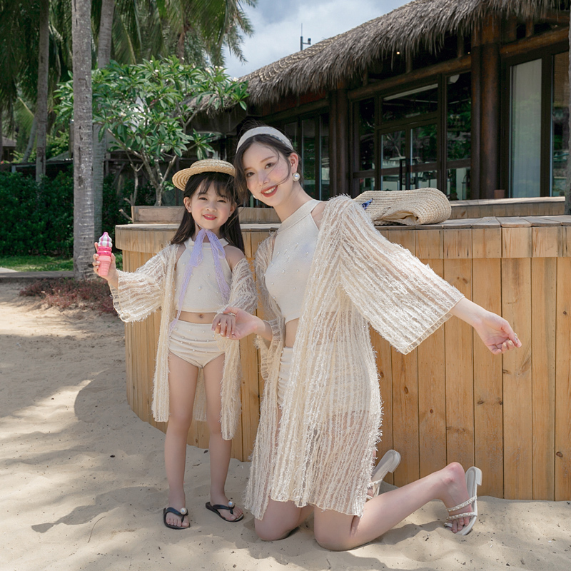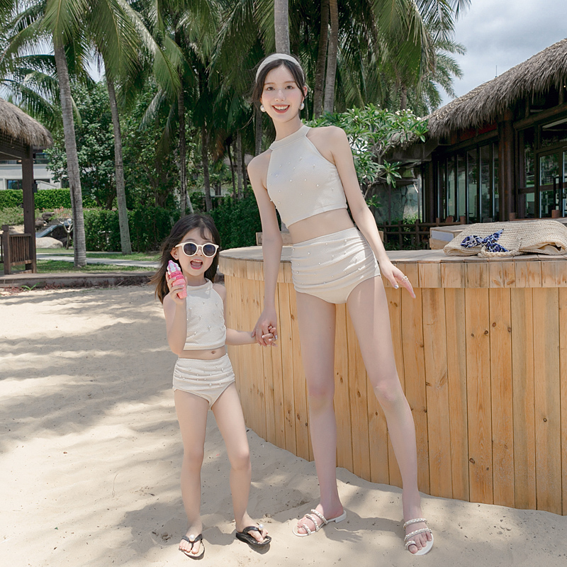 ins parent-child mother and daughter swimsuit Korean version of small chest gathered conservative split three-piece steel support fairy fan swimsuit