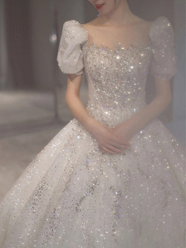 French wedding dress 2021 new bride summer court style temperament tailing small Man simple go out yarn 2020