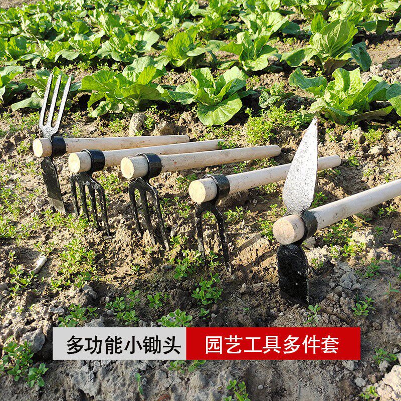 Primary colour sharp mouth small digging hoe (special price) black pointed hoe small hoe (with wood handle) orange flat head small hoe (with wood pass) black two-teeth small hoe (with wooden handle) black three-teeth small hoe head (with wooden handle)