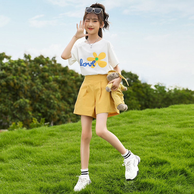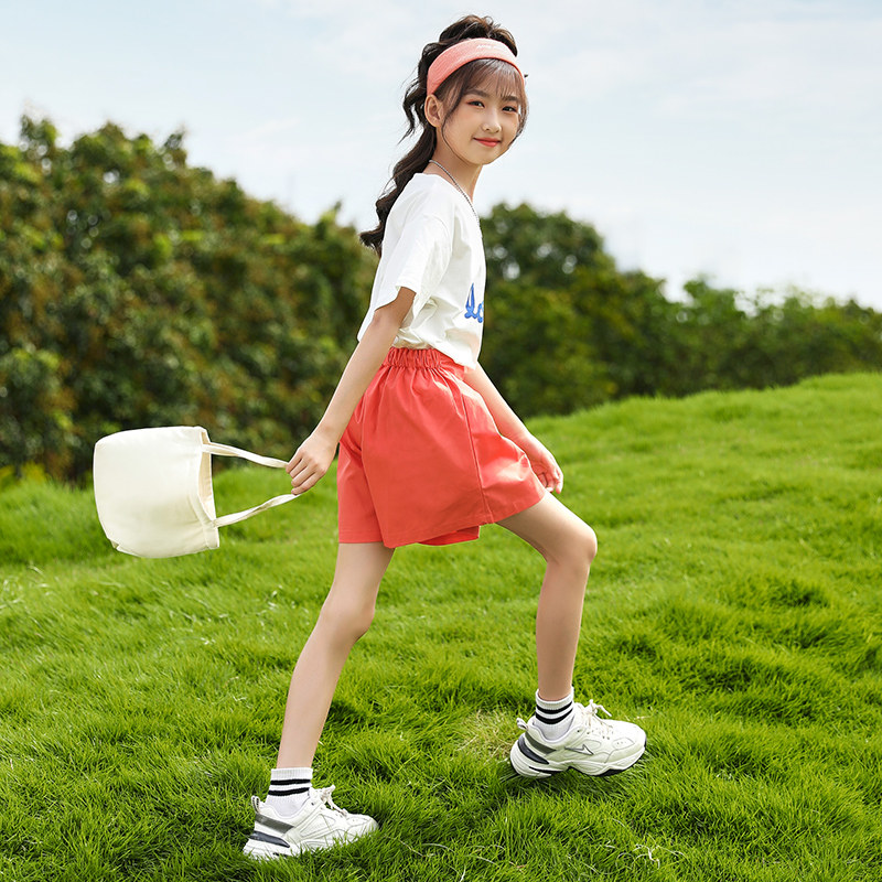 Girl Clothing Summer Sports Suit 2022 New CUHK Child Girl Girl Thin Ocean Pie Net Red Two-piece Set